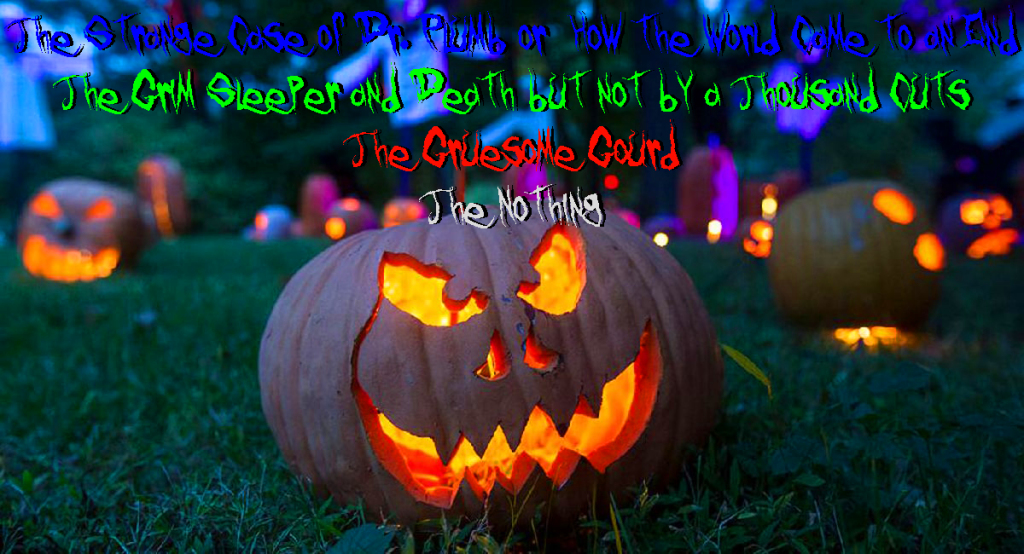 What better way to celebrate five years of ASP Stuff Radio than to listen to four dark, spooky tales from our 2nd annual Spooky Stuff Halloweenepisode! The show opens with Paulato’s “The Gruesome Gourd” where a malevolent flying gourd torments innocent villagers of Circleville by spewing out pumpkin guts all over their faces. Steveocrates’ “The Grim Sleeper and Death but Not by a Thousand Cuts” is the second tale about a sinister death industry that specializes in the systematic execution of various alien species across the Snickerdoodle constellation through the use of devious grim reapers. ASP Stuff Radio is proud to announce that the third spooky tale, “The Nothing,” was written and submitted by one of our dedicated listeners, Timothy Knowles. In his haunting semiautobiographical story a young Knowles encounters a formless ominous entity that continues to plague his mind. Finally, in Alberotle’s “The Strange Case of Dr. Plumb or: How the World Came to an End,” we learn about the strange and horrific demise of Dr. Alexander Plumb and the rest of humanity.